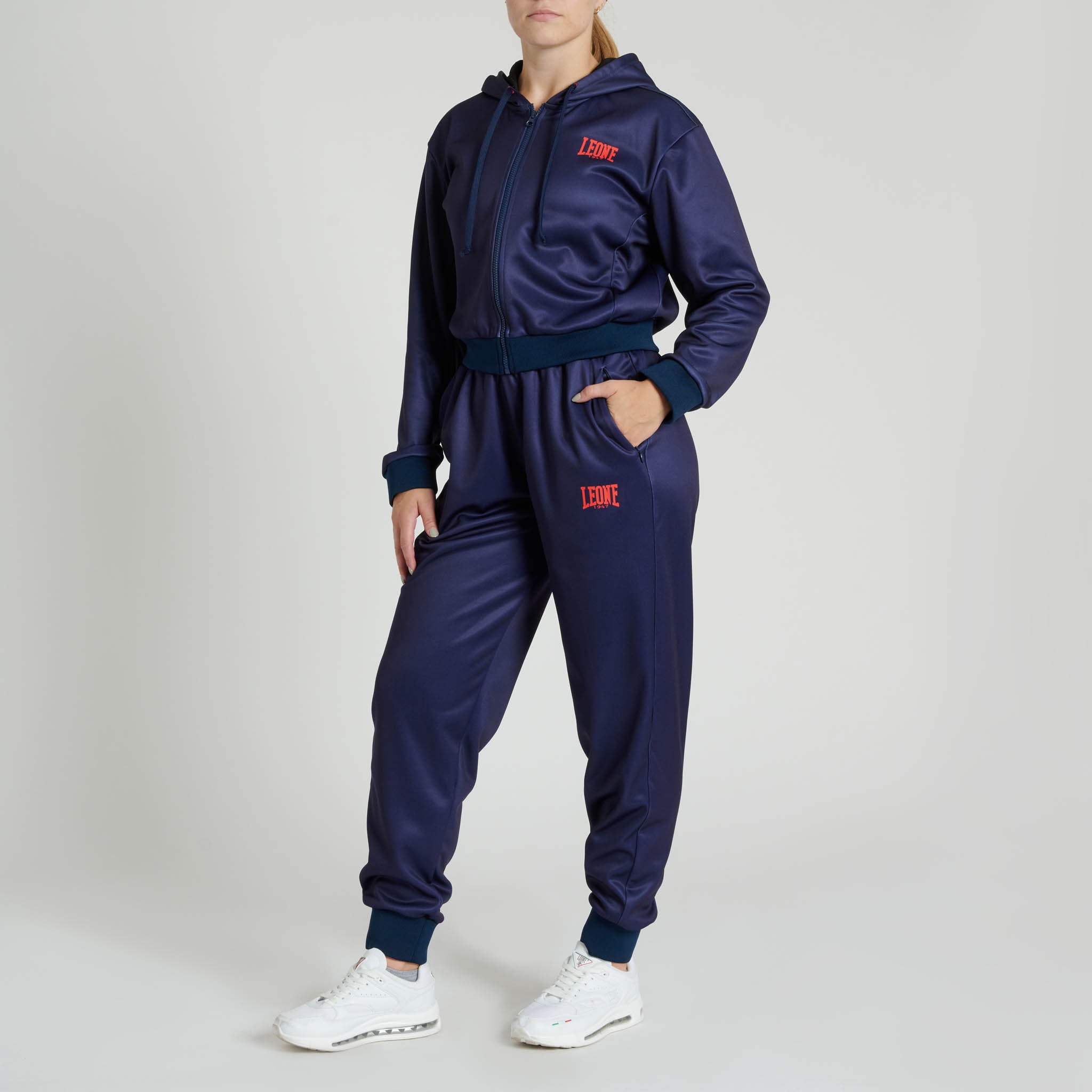 Leone 1947 Hoodie med kapuschong för kvinna med logo WACS ABX138 är en bekväm och stilren hoodie perfekt för dig som vill ha komfort, funktion och sportig design i ett plagg. Den passar lika bra för uppvärmning och vila efter träning som för vardagsbruk tack vare sin mjuka känsla och moderna look.